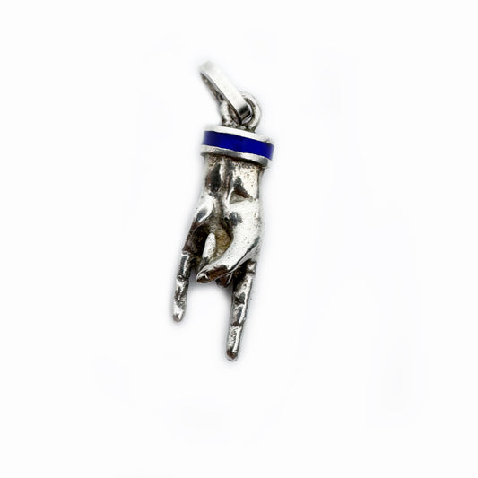Vintage Italian Mano Cornuta Charm, 800 Silver Horned Hand Blue Enamel Evil Eye, Mid-Century Pendant