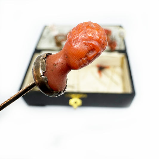 Carved Coral Head Stick Pin, Antique Victorian 9k Gold Collar, Roman Style Bust