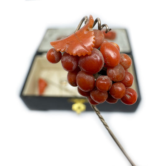 Antique Mediterranean Coral Grapes Stick Pin | Victorian Tie Pin Red Orange Coral Jewellery