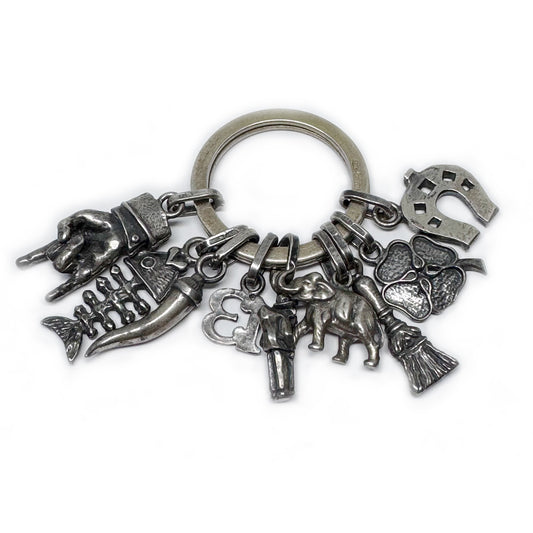 Vintage Italian 925 Silver Lucky Charm Ring, Mano Cornuto Cornicello Charms, Good Luck Talisman Keyring