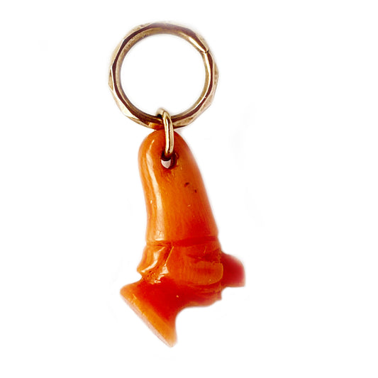 Antique Genuine 18k Coral Figa, Natural Coral Mano Fico, 1800s, Figa Charm