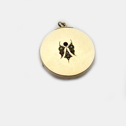 Antique Edwardian Ruby Seed Pearl 10k Gold Locket Pendant