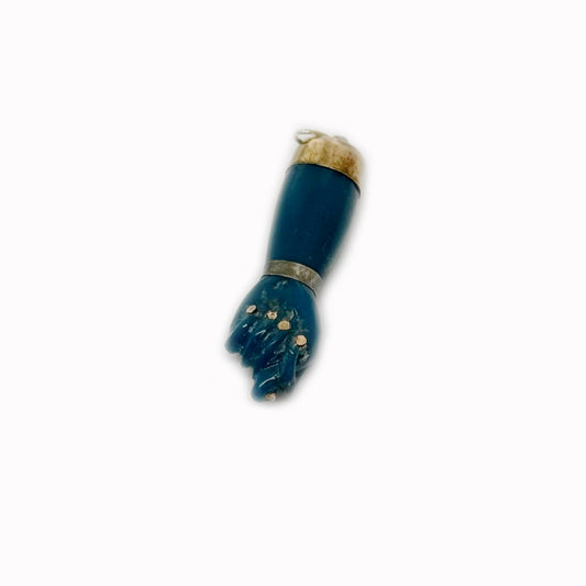 Vintage 14k Gold Blue Figa, Carved Bakelite, Hand, Blue Tone, 1950's Figa, 14 ct Gold, Amulet, Pendant, Figa Charm, Mano Fico, Fist