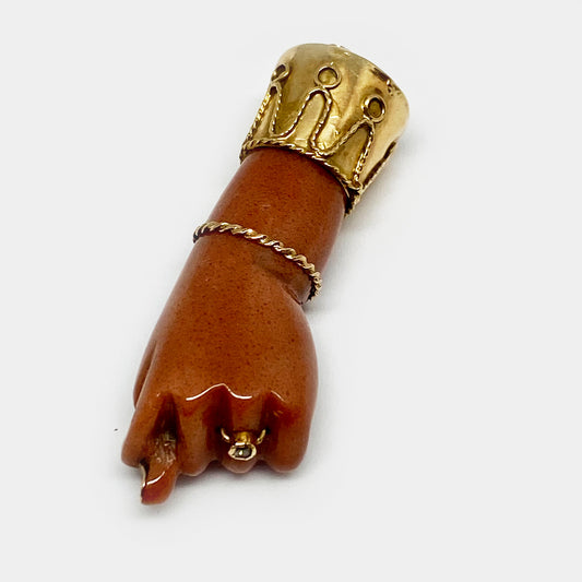 Vintage 14k Gold Large Pink Resin Figa Charm