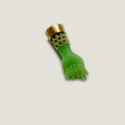 Vintage 14K Gold Green Resin, 1940s Hand Fist Figa Charm