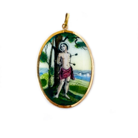 Vintage 14k Gold Enamel Religious Saint Sebastian Medal