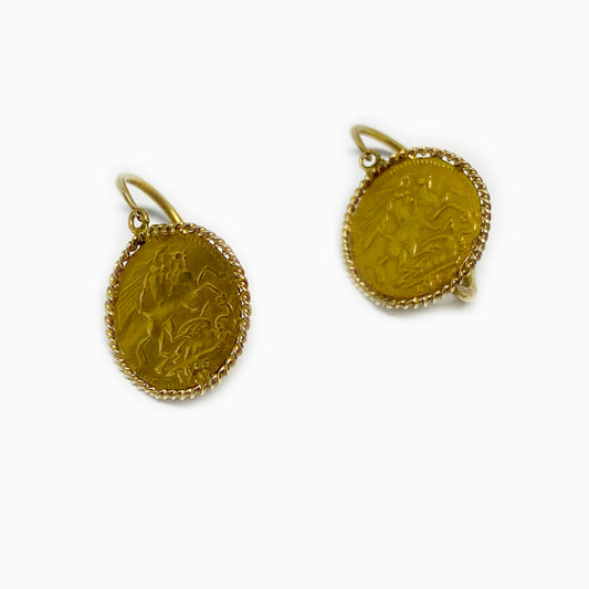 Vintage 14k Gold St George Victoria Veiled Head Coin Earrings, 1960s Gold Coin earrings 14 ct gold, Revival Half Sovereign Jewellery