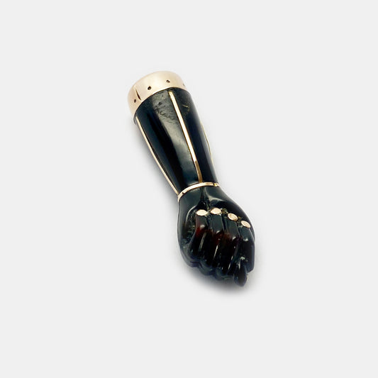 Vintage 14k Rose Gold Brown Resin Fist Figa Charm