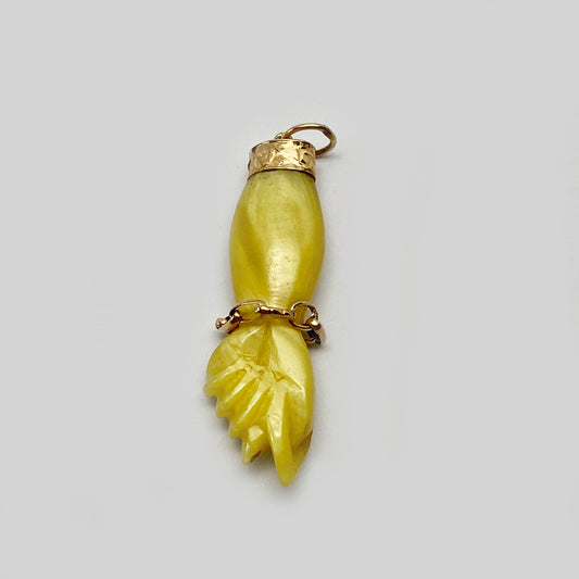 Vintage Agate Figa Hand, 9K Gold, Mano Fico, Hand Charm, Carved Agate Talisman, 1950s Hand Pendant, 9 ct Gold Pendant, Figa Charm, Stone