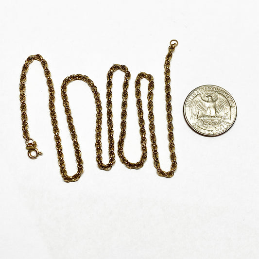 Vintage 9K Gold Rope Chain Necklace 1970s Hallmarked 375