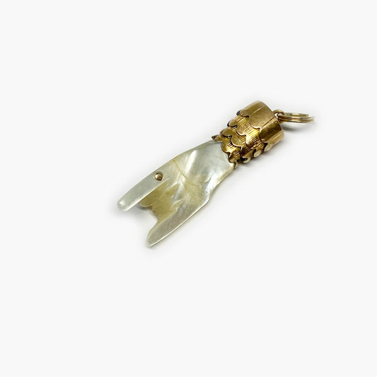 Antique 14K Gold Mother of Pearl Figa, Victorian Fist Charm