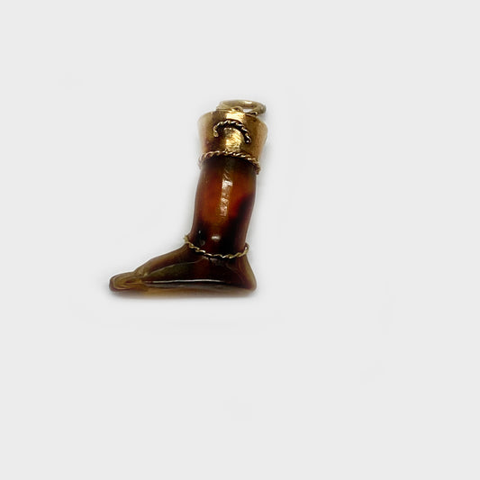 Antique 14K Gold Red Resin, Miniature Drum, Figa Charm