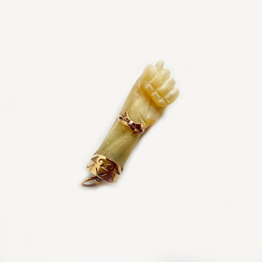 Antique 14K Gold Figa, 1940s, Bone Tone Bakelite, Fist Hand Pendant, Key, Amulet, Charm, Mano Fico Pendant, Figa Charm, Evil Eye Pendant