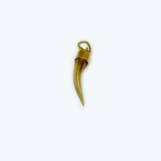 Antique 14k Horn Charm, Bone Corno 14 ct Gold Amulet Pendant