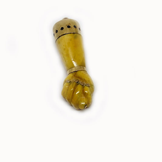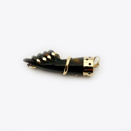 Antique 14K Gold Stained Horn Figa, Victorian Fist Hand Pendant, Key, Amulet, Charm, Mano Fico Pendant, Figa Charm, Evil Eye Pendant