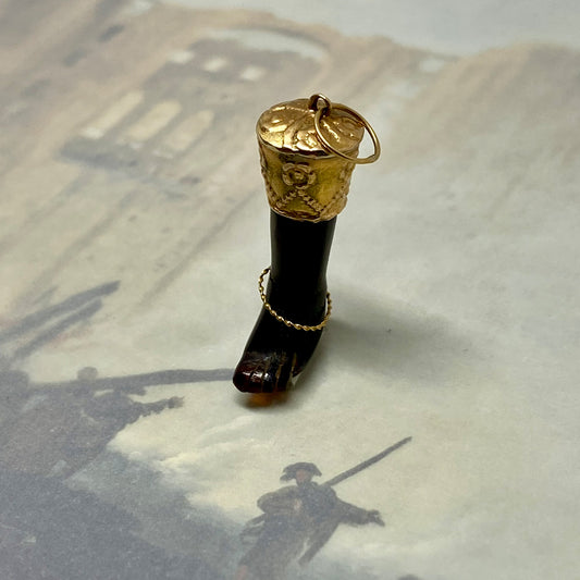 Antique 18k Gold Foot Pendant, Victorian Stained Horn Leg