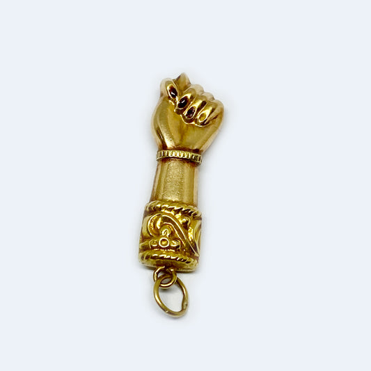 Antique 18k Gold Puffed Figa Charm, Ruby Nails