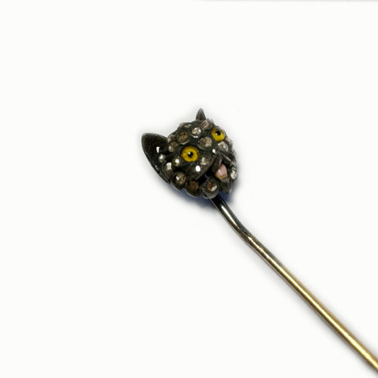 Antique 18k Gold Rose Cut Diamond Cat Stick Pin, Victorian Animal Pin, Cat Lover, Cravat Pin, 1800s, Tie Pin, Cat Jewellery, 18 ct Gold Cat