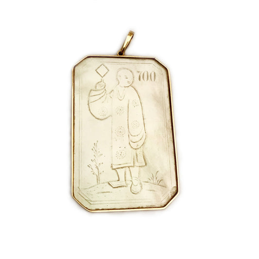 Antique 18K Gold Mother of Pearl Chinese Gaming Counter Token Pendant