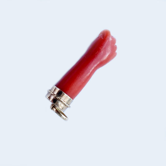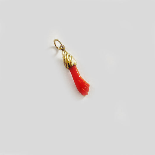 Antique 18K Gold Victorian Mediterranean Natural Coral Figa Charm (1060)