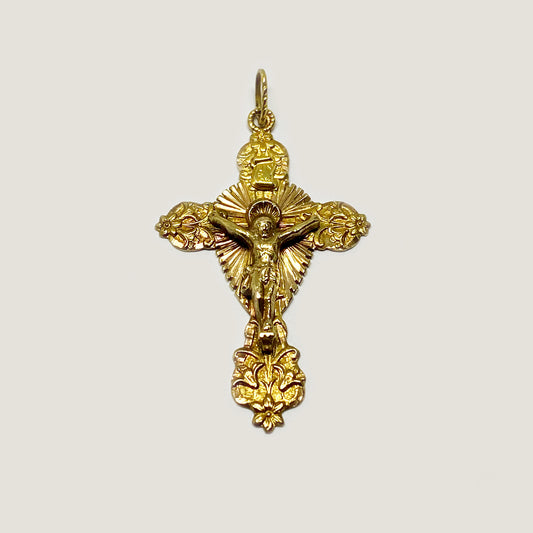 Antique 18k Victorian Cross, Raised Halo Jesus