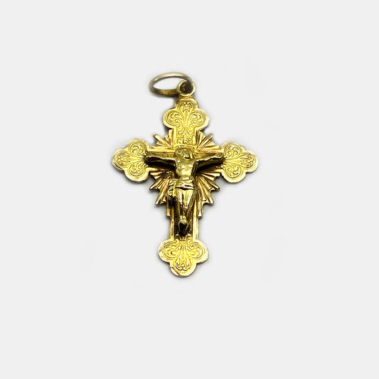 Antique 18k Victorian Cross, Precious Solid Gold Crucifix Pendant
