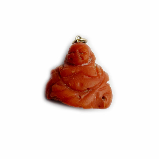 Vintage 14k Gold Coral Buddha Charm | 1950s Hand-Carved Salmon Coral Pendant | Midcentury Buddhist Amulet, Siddhartha Gautama