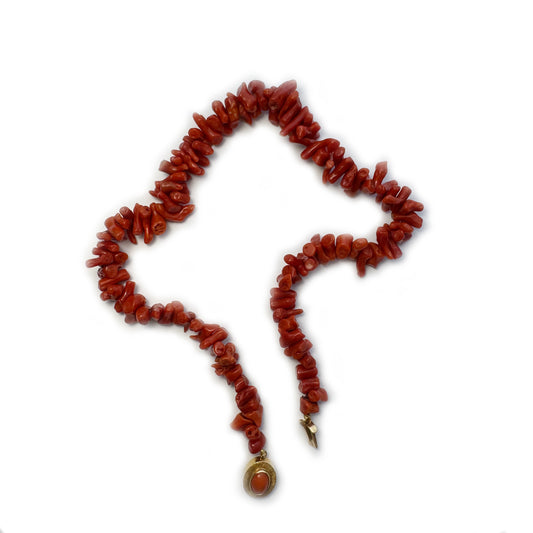 Antique 18k Gold Natural Italian Coral Necklace, Sardinian Red Coral Choker, Coral Branch, Early 20th Century Coral Beads, 1930s