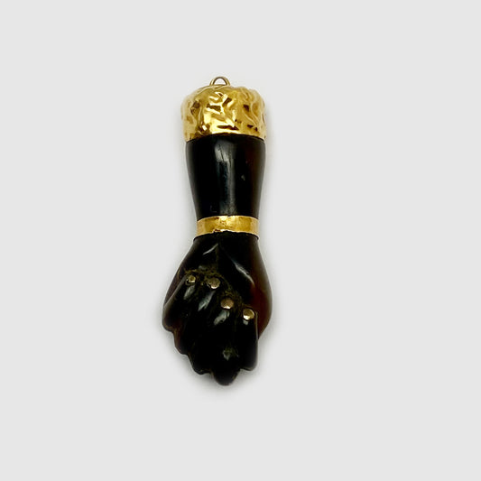 Antique 18k Gold Figa Hand, Victorian Stained Horn Pendant, Lucky Charm, 1800s, Mano Fico, Figa Charm, Hand Charm, Evil Eye, Hand Jewelry