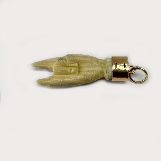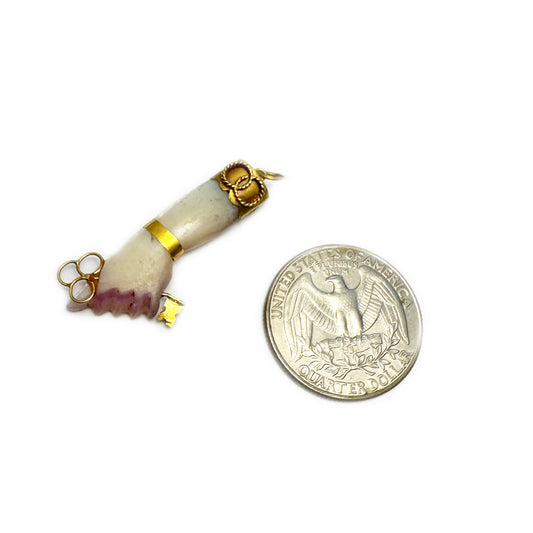 Antique 18k Gold Mano Figa Pendant: Victorian Bone Charm with Heart & Fish