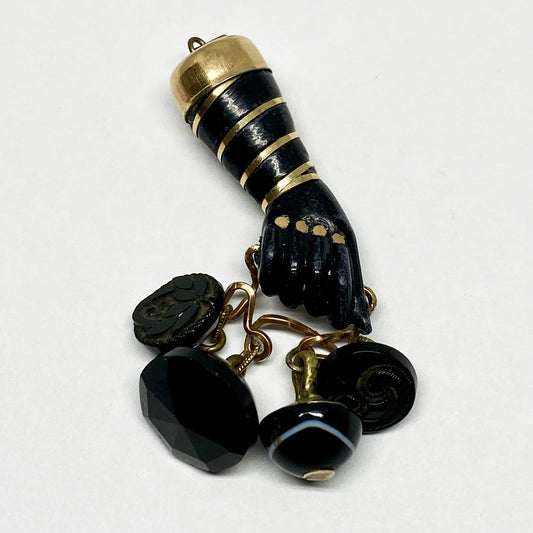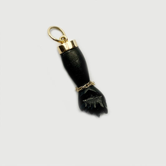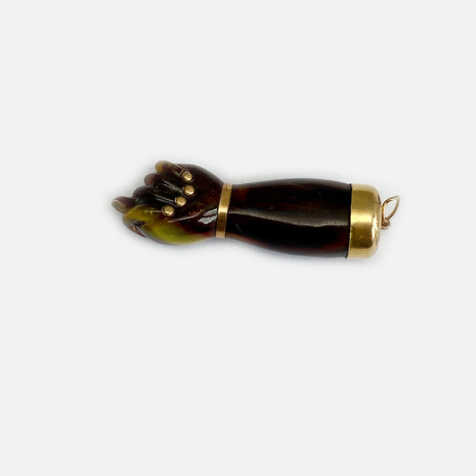 Antique 18k Gold Figa Hand, Victorian Stained Horn Figa Charm