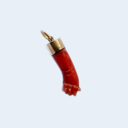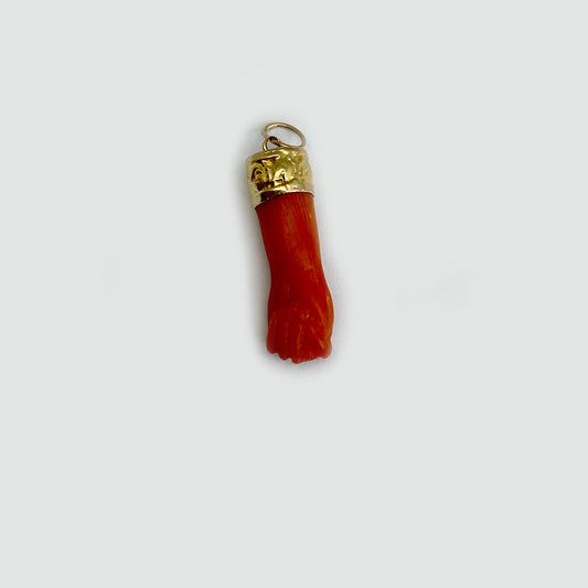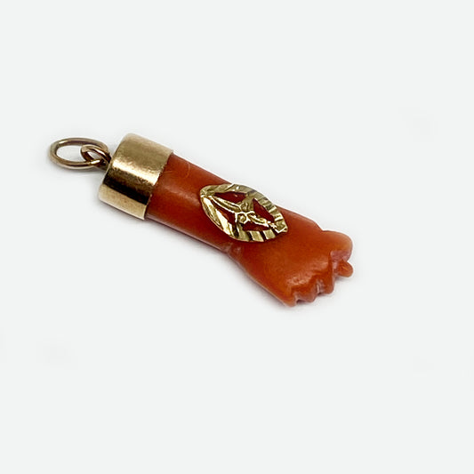 Antique 9K Gold Coral Fist Figa Charm