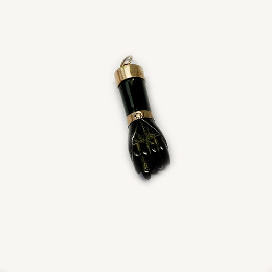 Antique Agate Figa Charm, 14K Gold