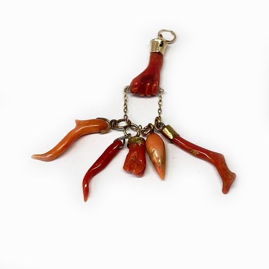 Antique 14K Gold Victorian Mediterranean Natural Coral Figa Charm
