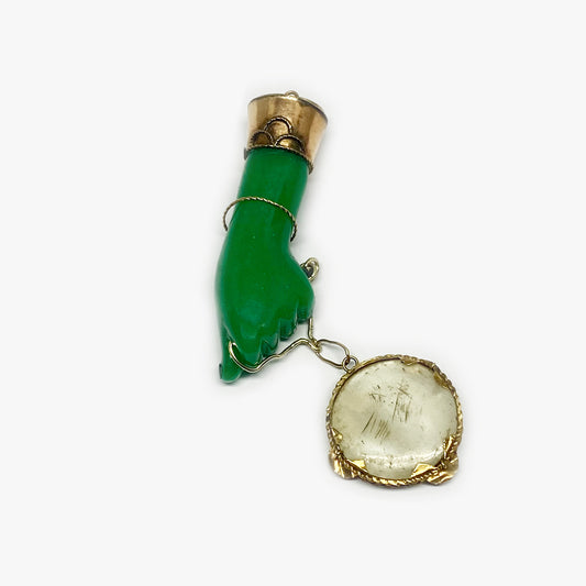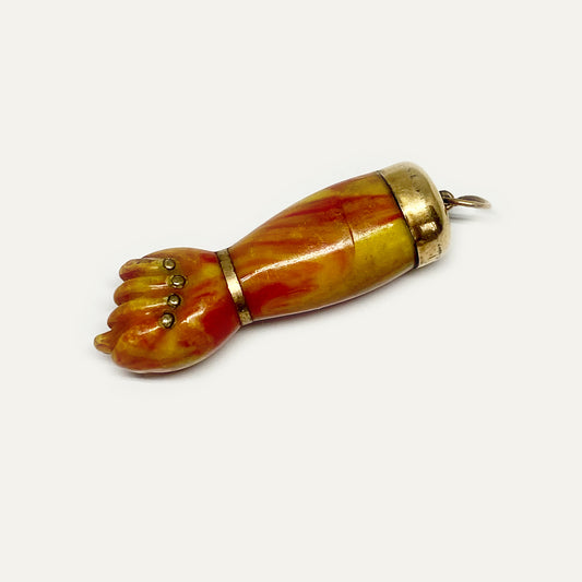 Antique Gold plated Figa Hand, Victorian Stained Horn Lucky Figa Charm