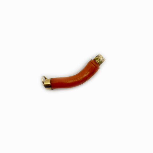 Antique 14k Gold Coral Pendant, Victorian 14 ct Gold Amulet, Mediterranean Coral, Natural Coral, Jewelry, Cornicello, Evil Eye, Corno Charm
