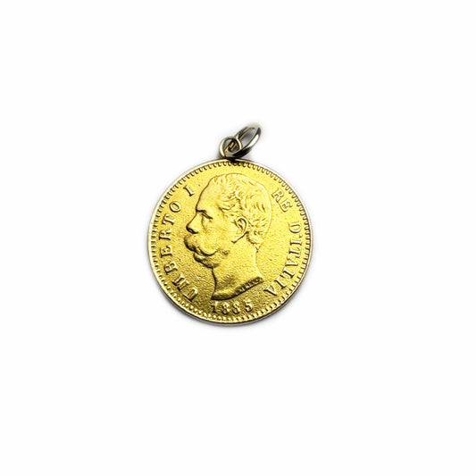 Antique 21k Solid Gold Italian Coin Pendant, 1885 Umberto I 20 Lire Charm, 6.5g Gold, Gold Coin, Italian Souvenir, Precious Gold Charm