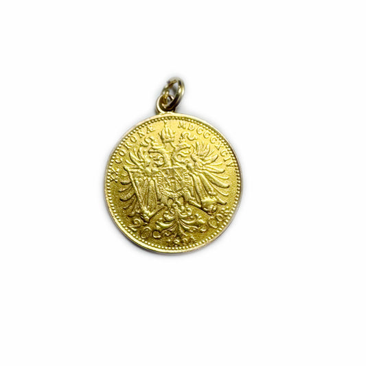 Antique 21k Solid Gold Austro-Hungarian 20 Corona Charm, 21 ct Coin Pendant, Austria 1894 Gold Coin Charm, Gold 6.9 grams