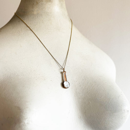 Antique 14k Gold 1920s Mother of Pearl Banjo Instrument Pendant (1117)
