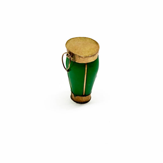 Antique 9k Gold 1930s Green Bakelite Conga Drum Pendant