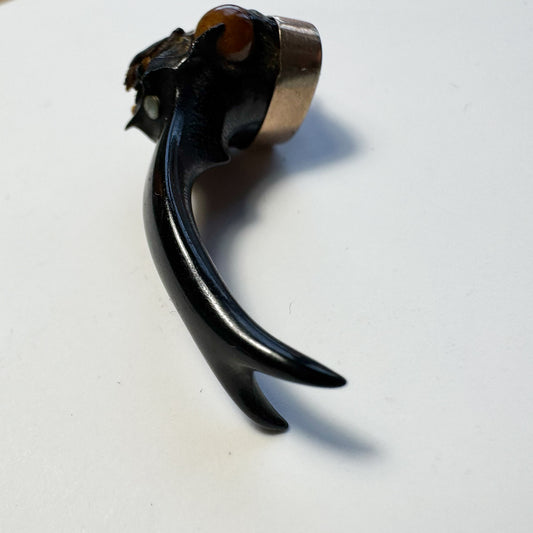 Antique Coral & Silver Amulet, Italian Good Luck Charm Corno Horn
