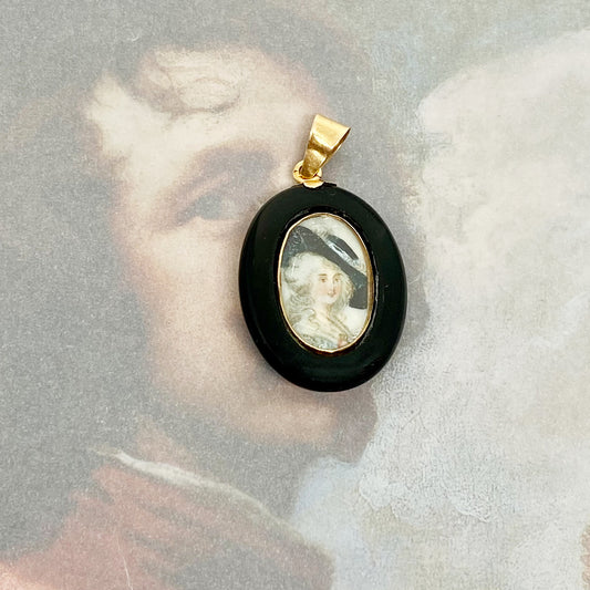 Victorian 18k Gold Onyx Mourning Locket Pendant