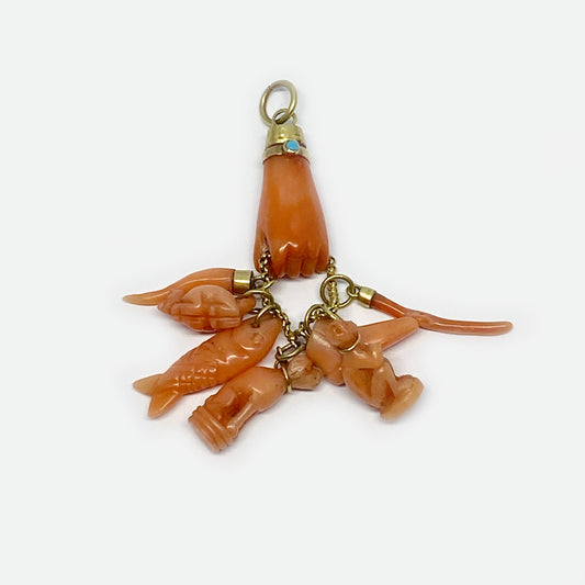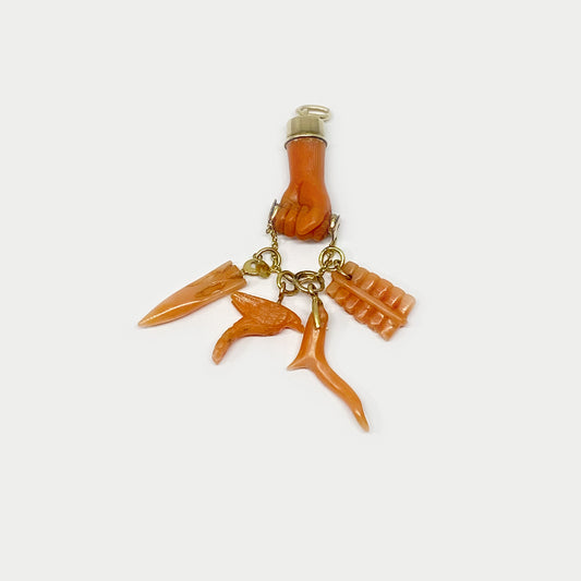 Antique 14K Gold Coral Fist Figa Charm