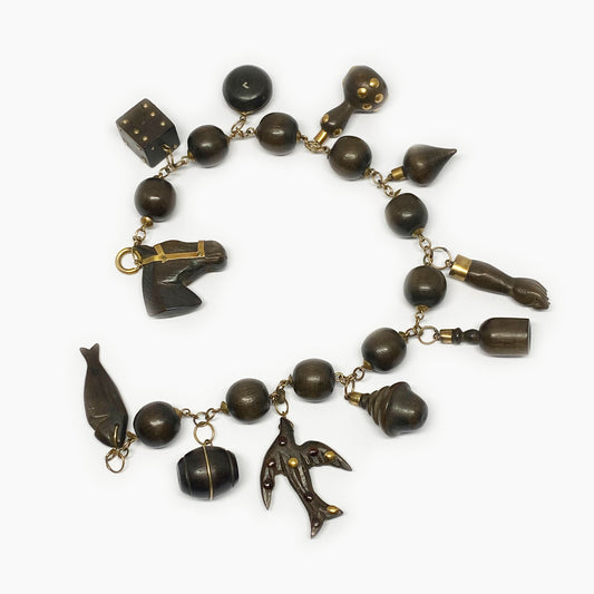 Vintage 14k Gold Wooden Charm Link Bracelet