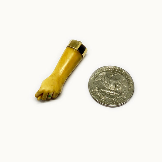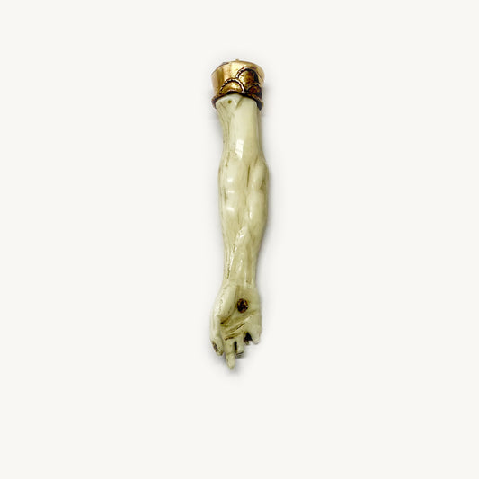 Antique 14K Gold Bone Arm Charm, Victorian Hand Pendant, Stigmata Pierced Nail, Figa Charm