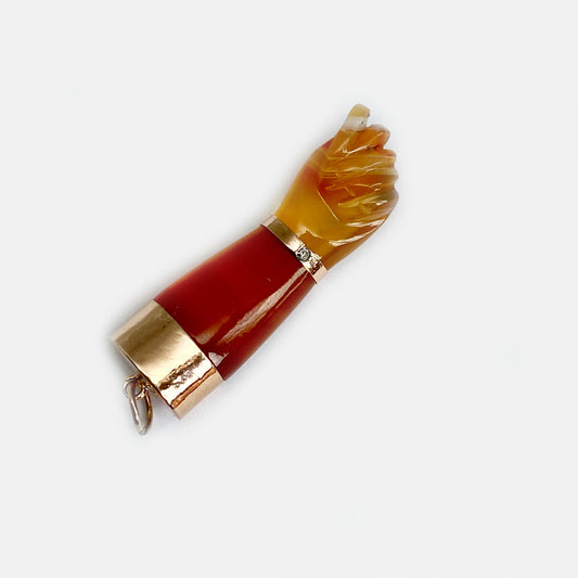 Antique 14K Gold Figa, 1960s, Orange Bakelite, Fist Figa Charm