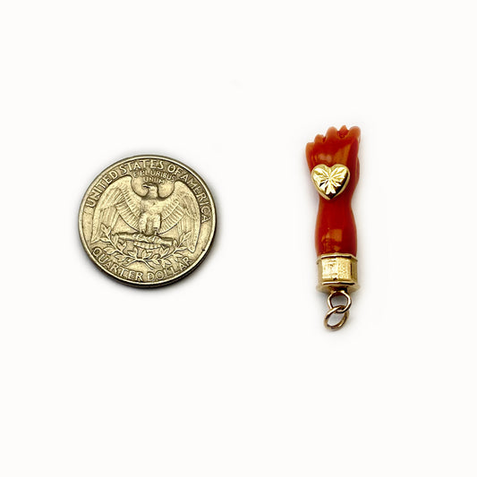 Antique 14k Gold Coral Figa, Small 1800s Mediterranean Coral Amulet, Mano Fico, Figa Charm