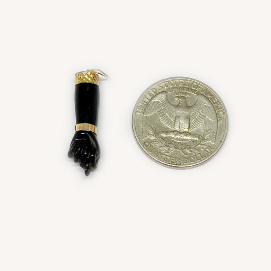 Antique 14k Gold Black Figa Hand, 1940s Black Figa Charm