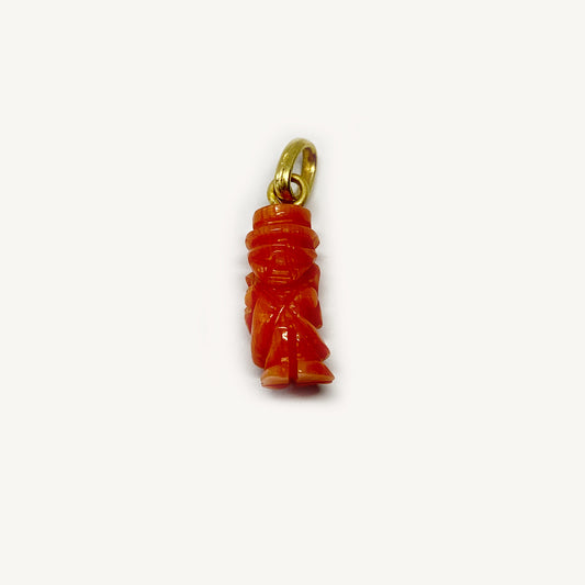 Antique 18k Gold and Coral Victorian Lucky Gobbo, Natural Coral Pendant