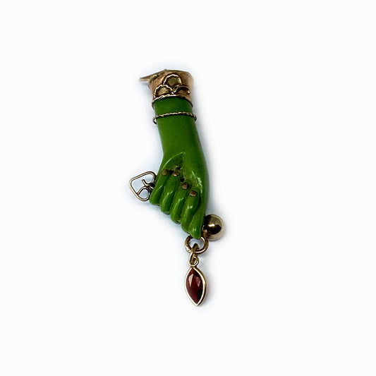 Vintage 14K Gold Green Resin, 1940s Hand Fist Figa Charm